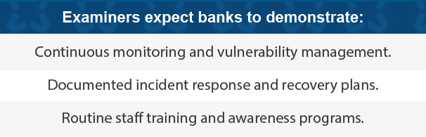A minor breach can disrupt business continuity for any institution. Examiners now focus on how institutions identify, assess, and remediate vulnerabilities. Waiting for regulatory findings may be too late. Proactive measures that strengthen controls and show measurable cybersecurity readiness are the best way to protect your organization.